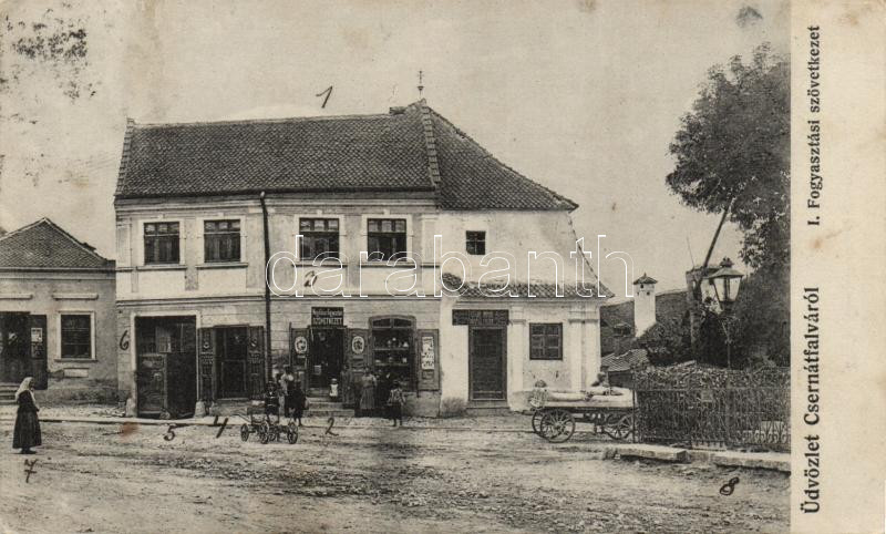 Csernátfalva, cooperative, Todor Mihai's shop https://www.darabanth.com/de/16-Gross-Auktion/16.1/Ansichtskarten-Ungarn/Siebenburgen~4882/Csernatfalva-cooperative-Todor-Mihais-shop~II697804