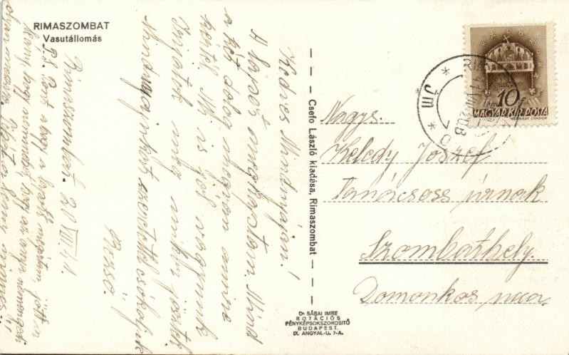 Rimaszombat railway station https://www.darabanth.com/de/16-Gross-Auktion/16.1/Ansichtskarten-Ungarn/Slowakei~4883/Rimaszombat-railway-station~II697272