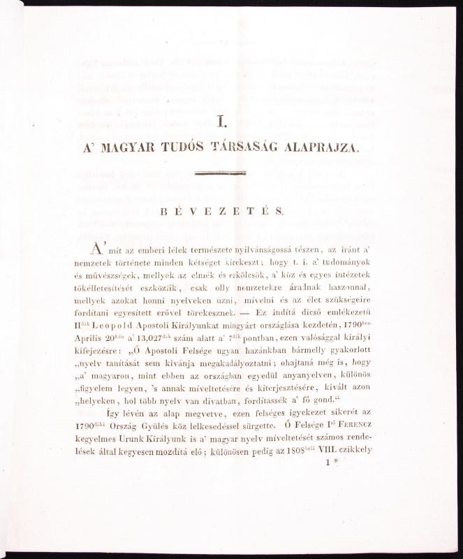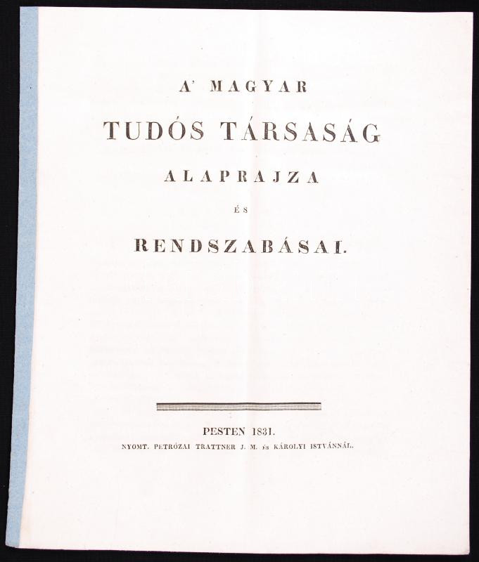 1831 A' Magyar Tudós Társaság alaprajza és rendszabásai. Pesten, 1831, Trattner-Károlyi, 27p. A gerincen papírcsíkkal megerősítve (a csík alul meglazult)
