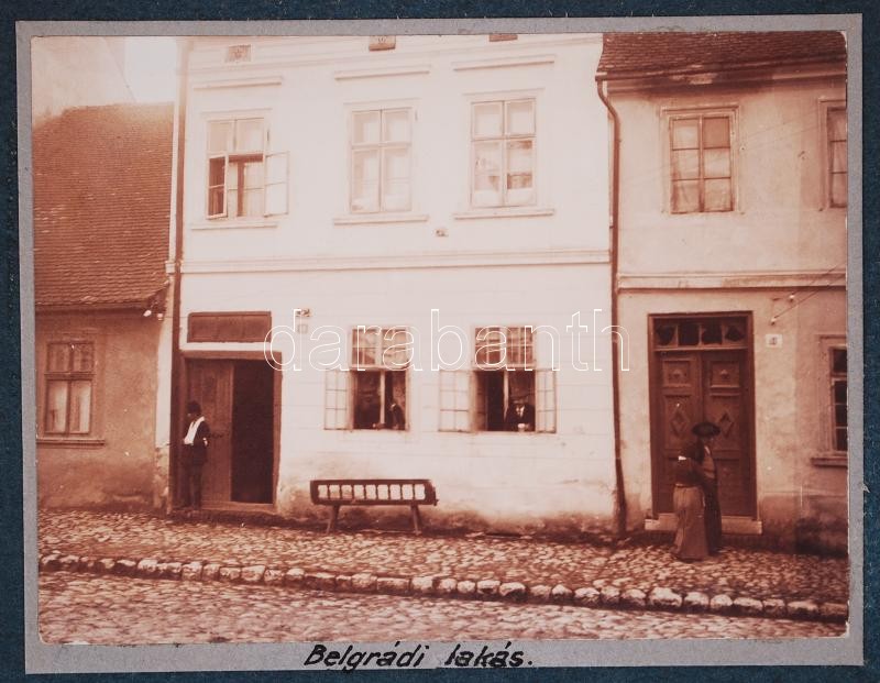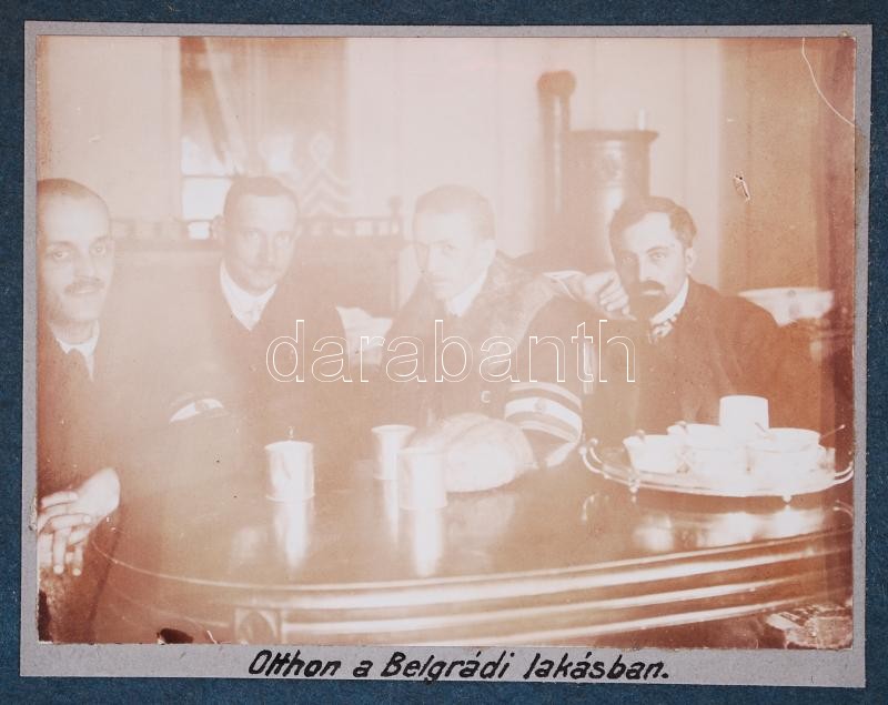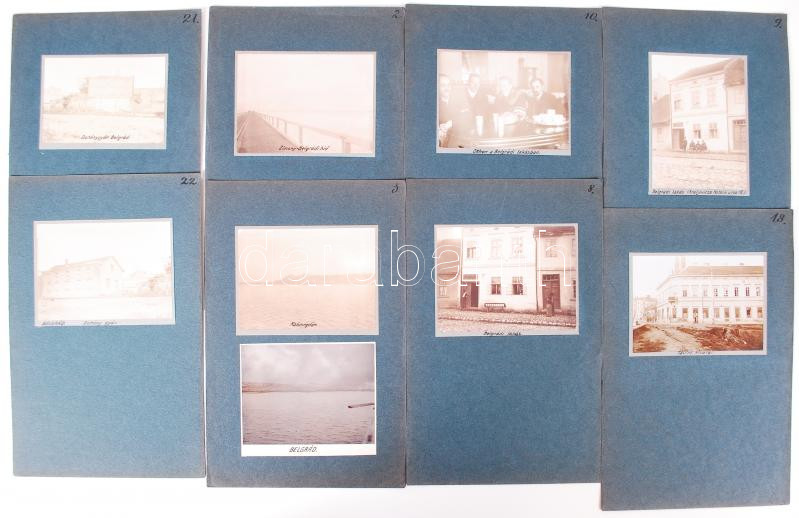 1915-1916 Kerny István (1879-1963) a háborús Belgrádban távíróhálózat-építőként készített 14db, feliratozott, vintage fotója, kartonra kasírozva /