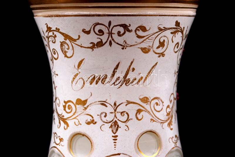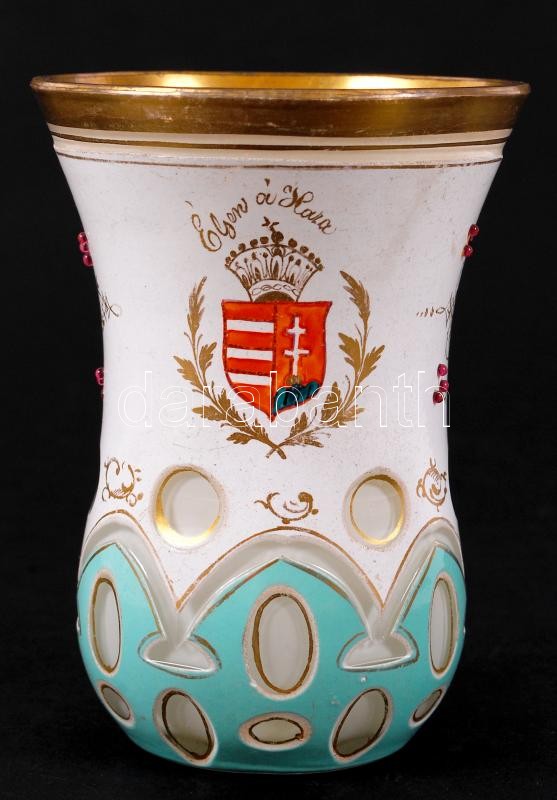 Emlék pohár, több rétegű, kézzel festett, metszett, hibátlan, m:12 cm ... https://www.darabanth.com/de/16-Gross-Auktion/16.1/Kunst-Dokumente/Glassgegenstande~5000/Emlek-pohar-tobb-retegu-kezzel-festett-metszett-hibatlan-m12-cm-Antique-glass-perfec~II698698