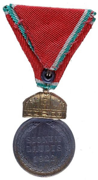 Hungary 1922. "Bronze Medal with the Holy Crown of Hungary on wartime ribbon with swords" zinc decoration C:XF