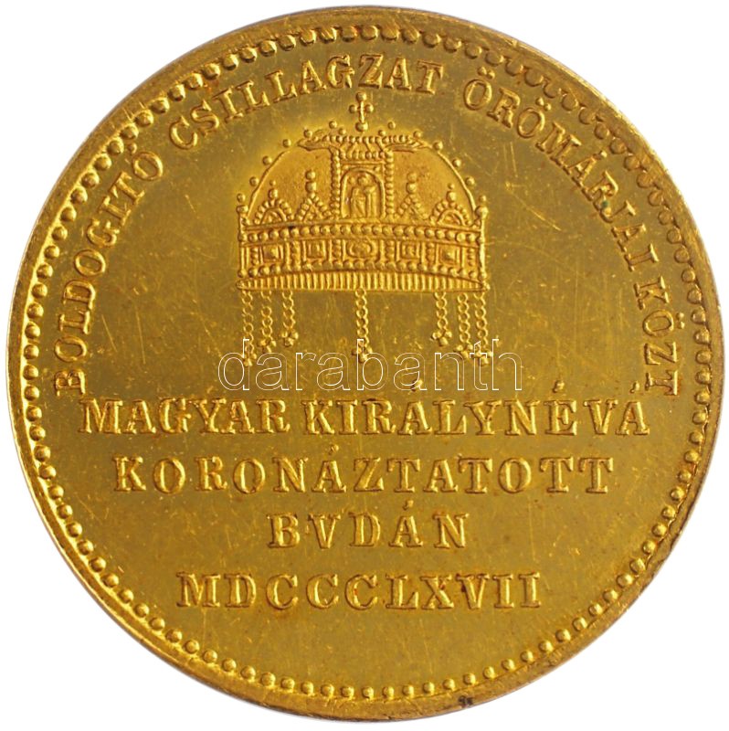 "ERZSÉBET AUSZTRIAI CSÁSZÁRNÉ A / BOLDOGÍTÓ CSILLAGZAT ÖRÖMÁRJAI KÖZT - MAGYAR KIRÁLYNÉVÁ/ KORONÁZTATOTT/ BVDÁN/ MDCCCLXVII"