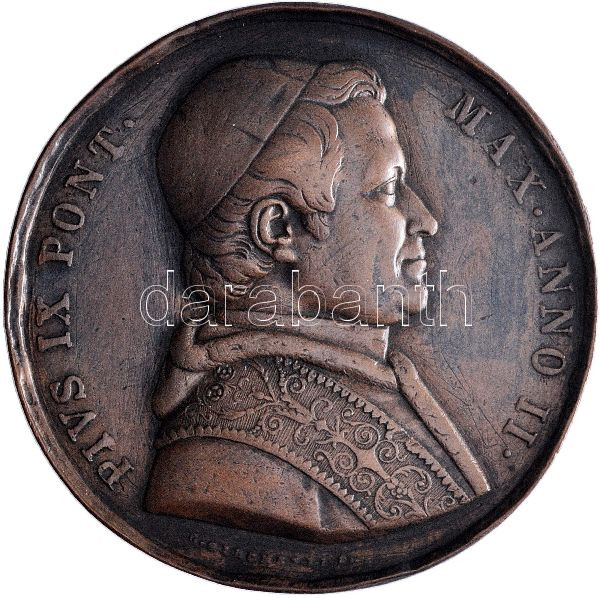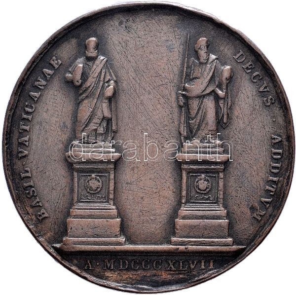 Italy / Papal States 1847. Commemorative Br medallion of Pope Pius IX and the inauguration of the Statues of Saint Peter and Saint Paul. "PIVS IX PONT MAX ANNO II / BASIL VATICANAE DECVS ADDITVM - A MDCCCXLVII" Sign.: G. GIROMETTI F. (43.09g/42.7mm) C:VF edge error