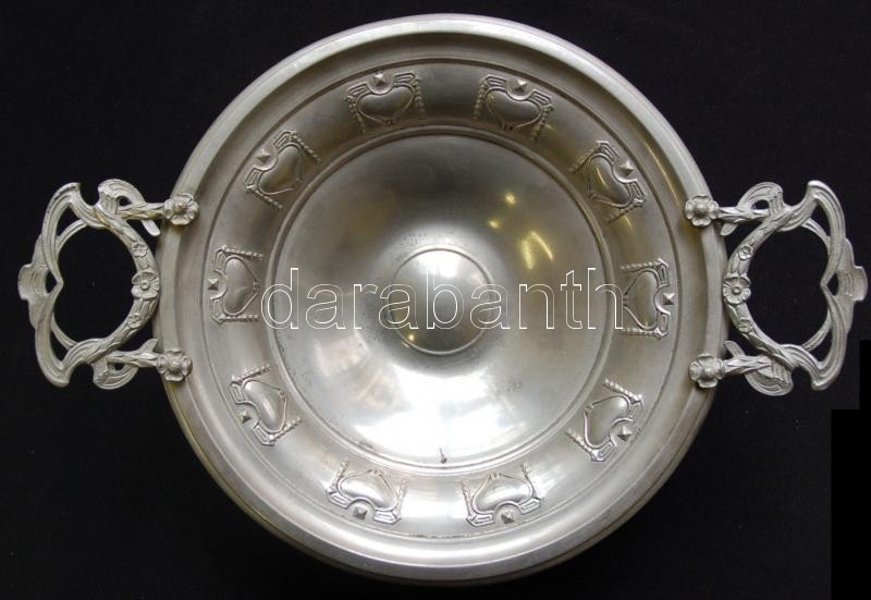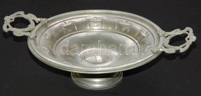 Beschreibung: Szecessziós díszítésű ón füles kínáló tál /