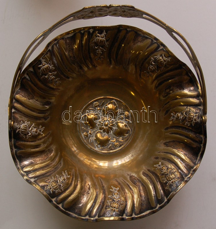 Beschreibung: Szecessziós díszítésű sárgaréz kosárka /