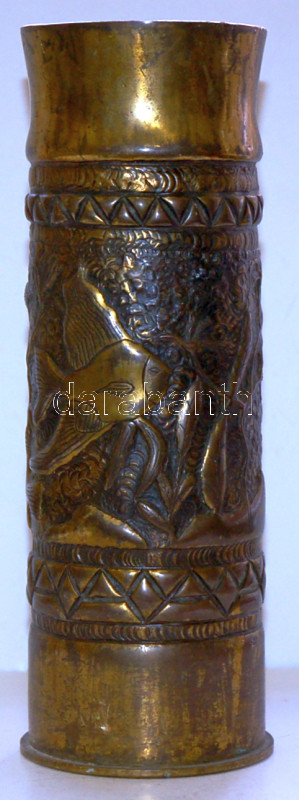 Beschreibung: Töltényhüvelyből készített váza domborművel díszítve /
