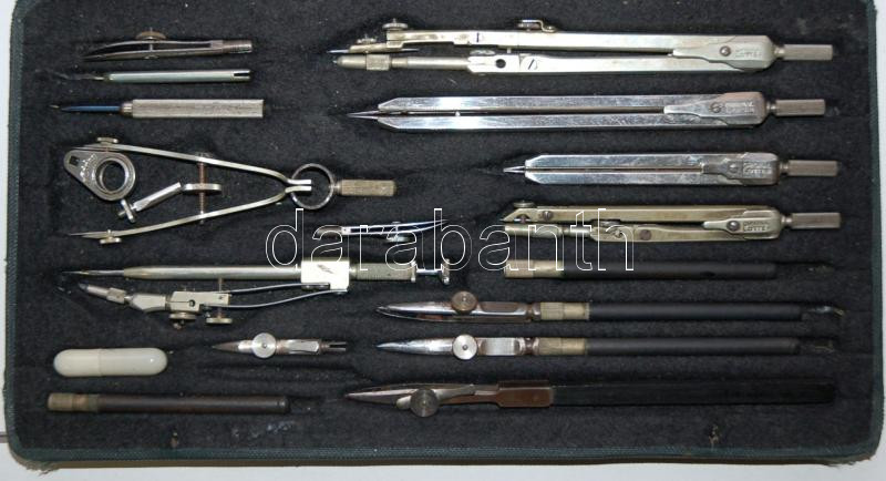 Beschreibung: cca 1930 Lotter márkájú 18 darabos körzőkészlet, hiánytalan /