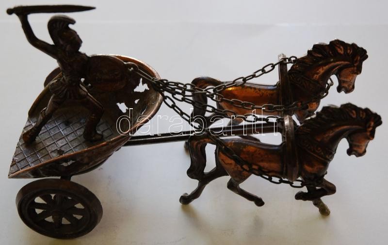 Beschreibung: Kocsihajtó görög harcost ábrázoló bronz kisplasztika /