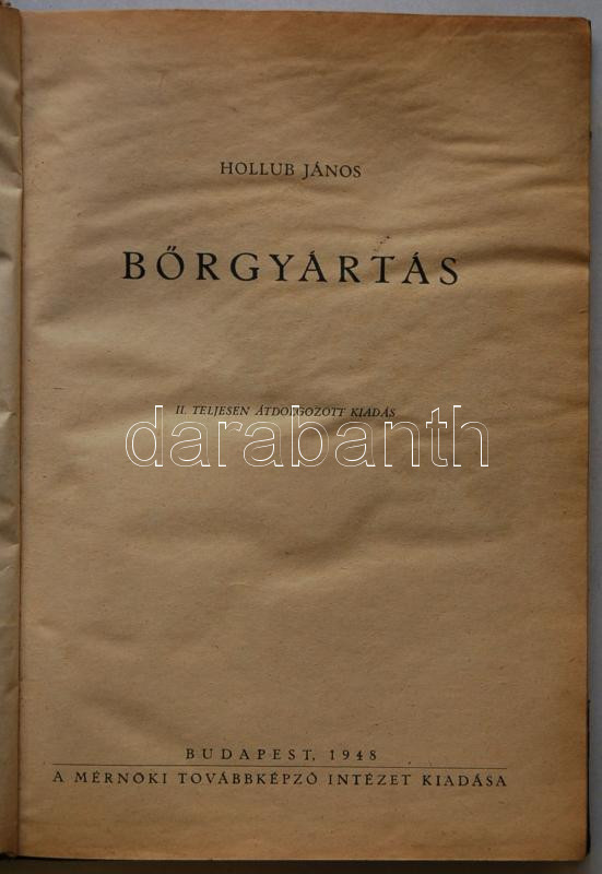 Hollub János: Bőrgyártás. II. átdolgozott kiadás. Bp, 1948, Mérnöki To... https://www.darabanth.com/de/161-Fernauktion/161.0/Andere-Sammelgebiete/Bucher-Sonstige-Raritaten~500033/Hollub-Janos-Borgyartas-II-atdolgozott-kiadas-Bp-1948-Mernoki-Tovabbkepzo-Intezet~II520373