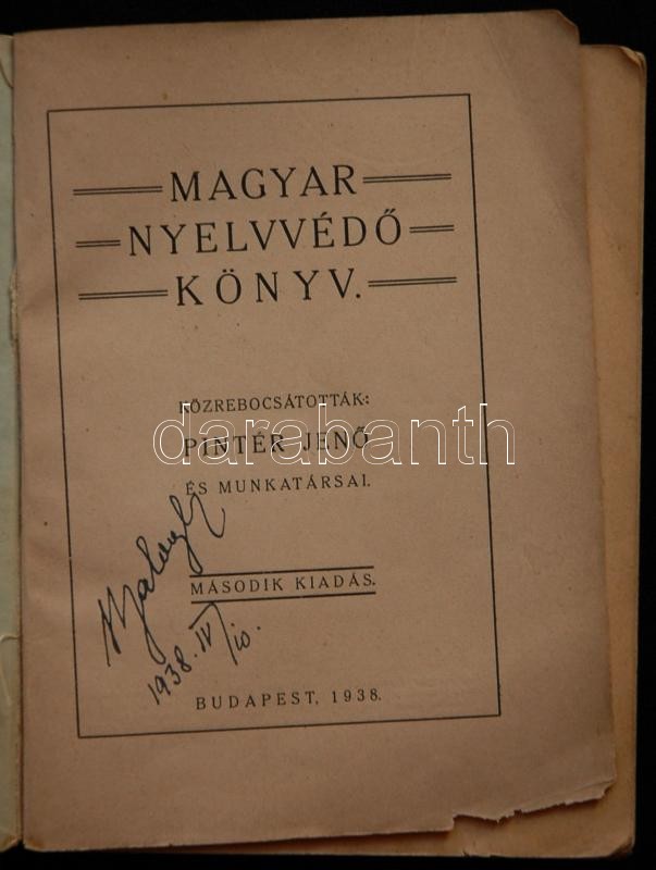 Sárkány Nyomda, Bp. 194... https://www.darabanth.com/de/161-Fernauktion/161.0/Andere-Sammelgebiete/Bucher-Sonstige-Raritaten~500033/Pinter-Jen23245-Magyar-nyelvved23245-konyv--3Cbr3ESarkany-Nyomda-Bp-1940-kiadoi-3Cbr3EpapC3~II518917