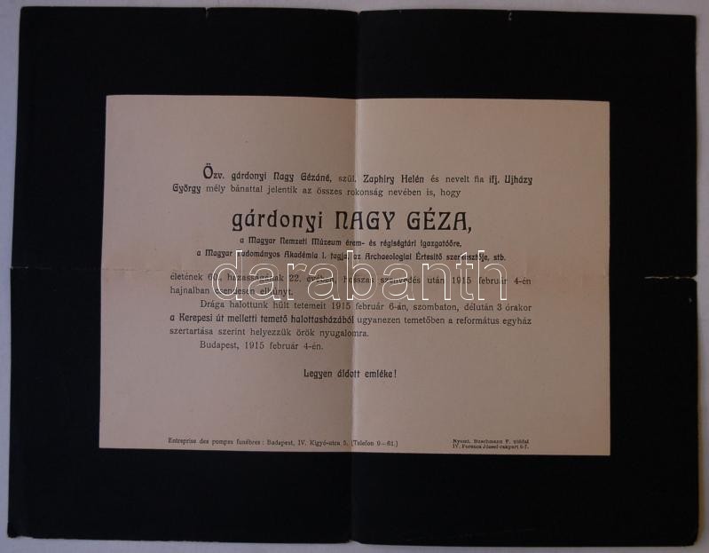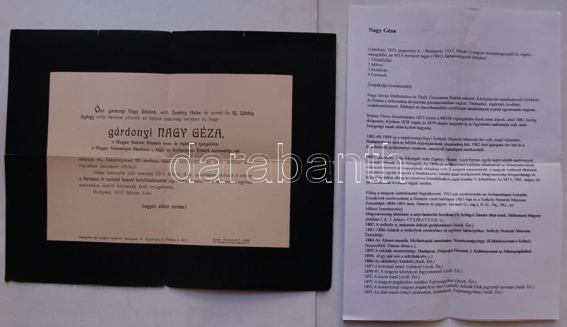 1915 Gyászjelentés gárdonyi Nagy Géza, a Magyar Nemzeti Múzeum érem- é... https://www.darabanth.com/de/161-Fernauktion/161.0/Andere-Sammelgebiete/Drucksachen~500160/1915-Gyaszjelentes-gardonyi-Nagy-Geza-a-Magyar-Nemzeti-Muzeum-erem-es-regisegtari-igazga~II519926