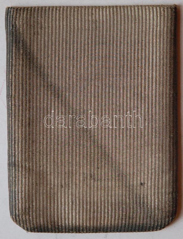 Beschreibung: Ezüstszálakkal szőtt régi igazolványtok magyar címerrel az elején, kissé kopottas 9,5x12,5cm