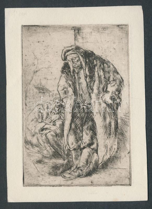 Beschreibung: Komjáti-Wanyerka Gyula (1894-1958): Nyomorultak, rézkarc-papír, 8,5x12cm