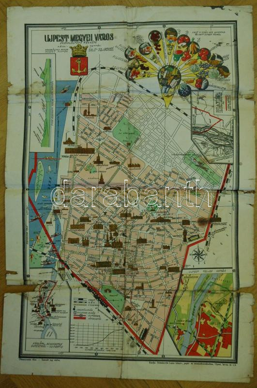 Beschreibung: cca 1930 Újpest város szemléltető térképe erősen megviselt állapotban 45x70 cm