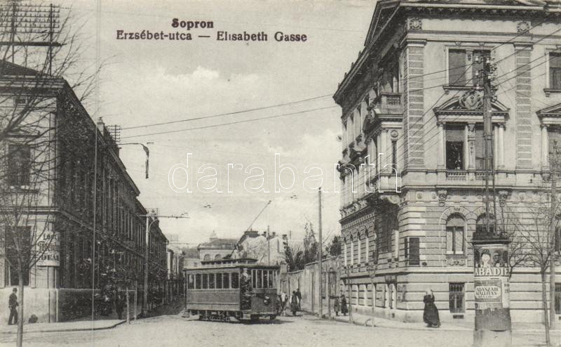 Sopron Erzsébet utca villamossal https://www.darabanth.com/de/161-Fernauktion/161.0/Ansichtskarten/Ungarn~662/Sopron-Erzsebet-utca-villamossal~II521339
