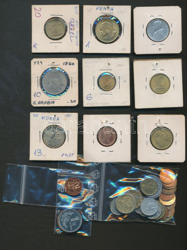 Vegyes világpénz, közte Kanada, Kenya, Korea, Szaúd Arábia, Egyiptom, Kuwait, Vatikán pénzei, összesen 43db T:PP,1,2