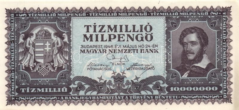 1946. 10.000.000MP (17x) T:I,II,III https://www.darabanth.com/de/161-Fernauktion/161.0/Numismatik/Ungarische-Banknoten~500142/1946-10000000MP-17x-TI-II-III~II518434