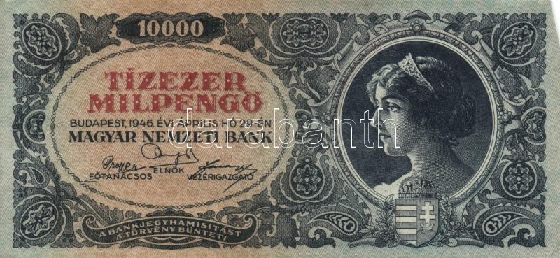 1946. 10.000MP (15x) T:II,II-(III) https://www.darabanth.com/de/161-Fernauktion/161.0/Numismatik/Ungarische-Banknoten~500142/1946-10000MP-15x-TII-II-III~II517336