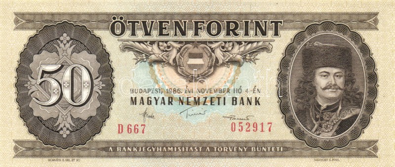 1986. 50Ft (2x) egymásutáni sorszámmal! T:I https://www.darabanth.com/de/161-Fernauktion/161.0/Numismatik/Ungarische-Banknoten~500142/1986-50Ft-2x-egymasutani-sorszammal-TI~II516704