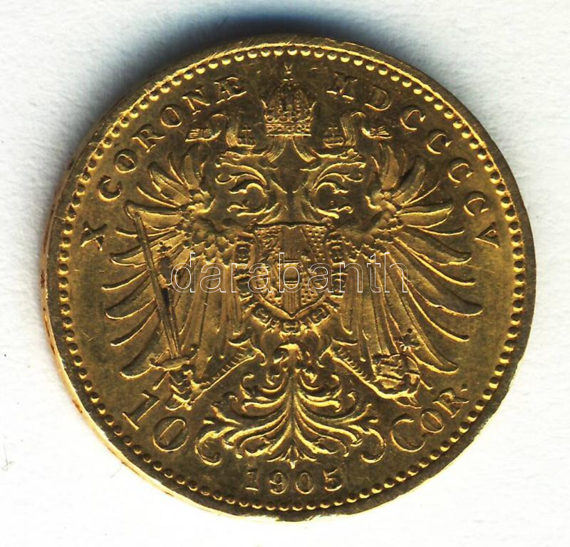 Austria 1905. ... https://www.darabanth.com/de/161-Fernauktion/161.0/Numismatik/Ungarische-und-Auslandische-Gold-Munzen~500145/Ausztria-1905-10K-Au-Ferenc-Jozsef-3-3875g-T2-ph-3Cbr3EAustria-1905-10-Corona-Au-Franz-Jose~II515988