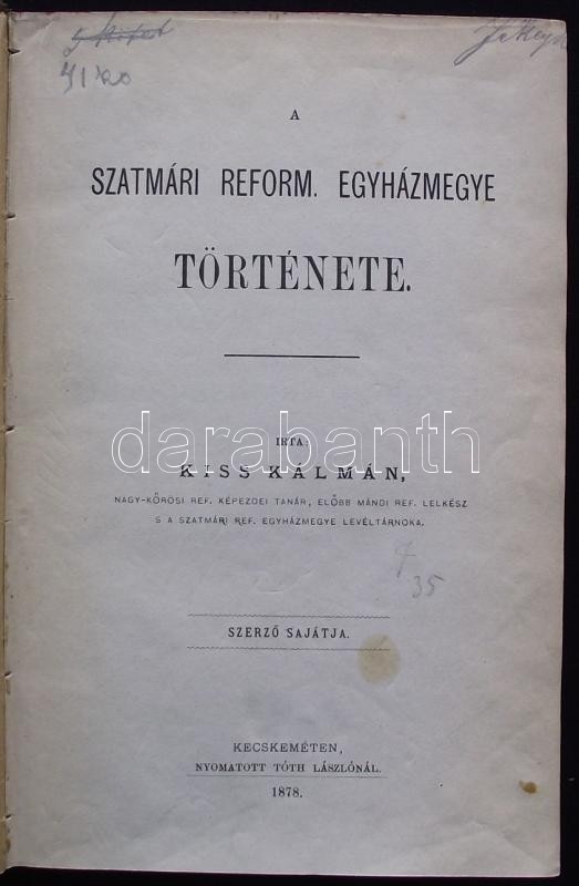 Kiss Kálmán: A szatmári reform. egyházmegye története. Kecskeméten, 18... https://www.darabanth.com/de/162-Fernauktion/162.0/Andere-Sammelgebiete/Bucher-Geschichte~1000028/Kiss-Kalman-A-szatmari-reform-egyhazmegye-tortenete-Kecskemeten-1878-Toth-Laszlo-904~II526963