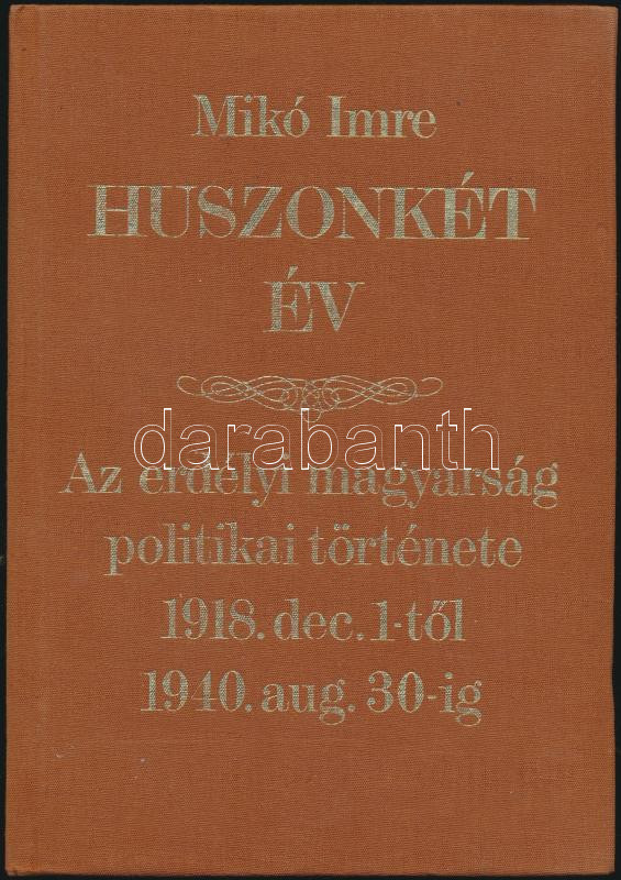 Mikó Imre: Huszonkét év. Az erdélyi magyarság politikai története 1918... https://www.darabanth.com/de/162-Fernauktion/162.0/Andere-Sammelgebiete/Bucher-Geschichte~1000028/Miko-Imre-Huszonket-ev-Az-erdelyi-magyarsag-politikai-tortenete-1918-1940-Hasonmas-kiada~II523329