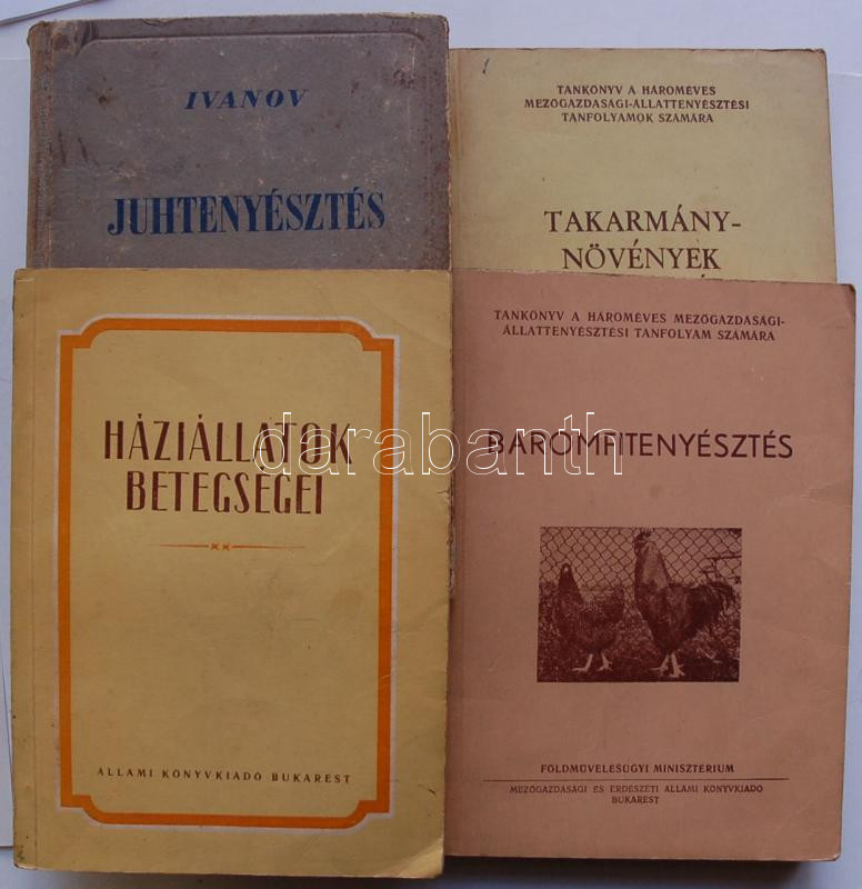 Beschreibung: 4db állattenyésztéssel kapcsolatos könyv: Baromfitenyésztés, Háziállatok betegségei, Juhtenyésztés, Takarmánynövények termesztése
