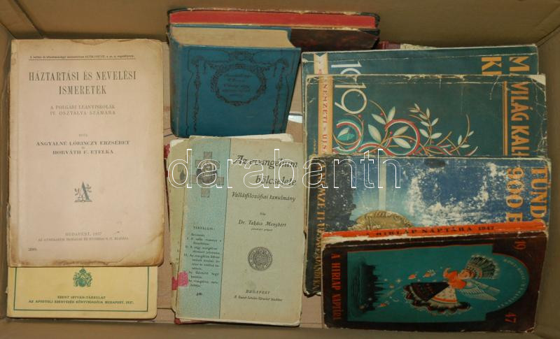 Beschreibung: Vegyes háború előtti könyvtétel 18 darab érdekes könyvvel: Pesti Hírlap különkiadványai, Háztartási ismeretek, Magyar Nemzet Története, latin tankönyv, egyéb