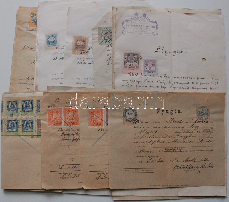 Beschreibung: 1875-1927 34db régi nyugta illetékbélyegekkel Szend községből