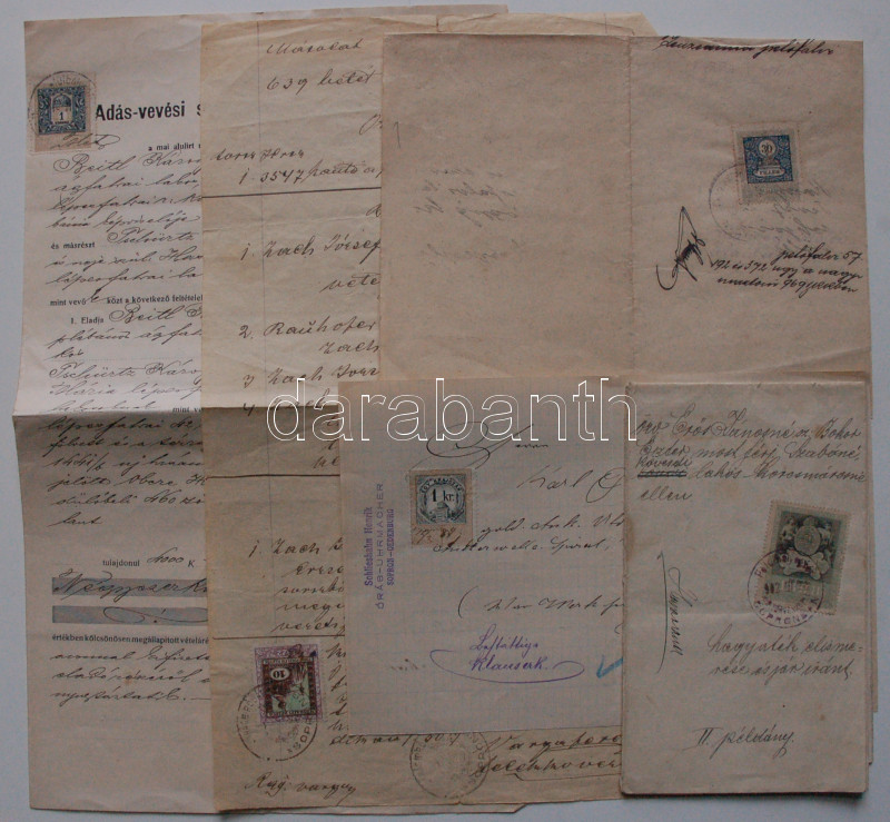 Beschreibung: 5db klf illetékbélyegekkel ellátott okmány és irat