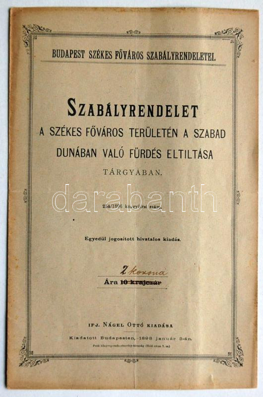 1898 Szabályrendelet a Dunában való fürdés megtiltására. Bp., Nágel Ot... https://www.darabanth.com/de/162-Fernauktion/162.0/Andere-Sammelgebiete/Drucksachen~1000146/1898-Szabalyrendelet-a-Dunaban-valo-furdes-megtiltasara-Bp-Nagel-Otto-1-plus-2-p~II511467