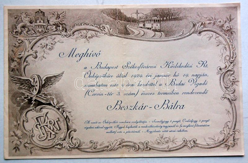 Beschreibung: 1929 Meghívó a BESZKAR (Bszkrt) bálra 25x16cm
