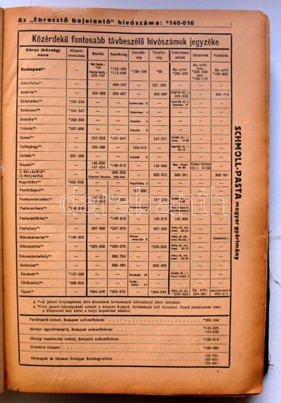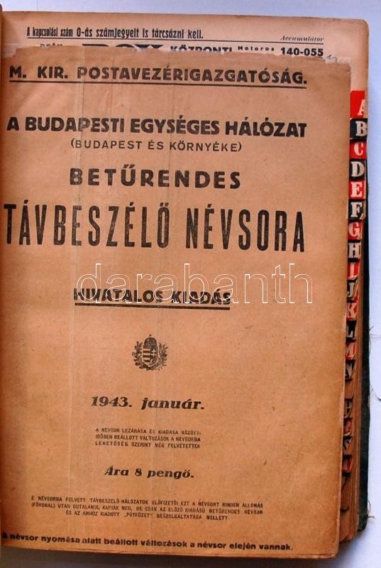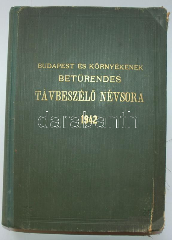 1942 Budapest és környékének betürendes távbeszélő névsora https://www.darabanth.com/de/162-Fernauktion/162.0/Andere-Sammelgebiete/Drucksachen~1000146/1942-Budapest-es-kornyekenek-beturendes-tavbeszelo-nevsora~II523779