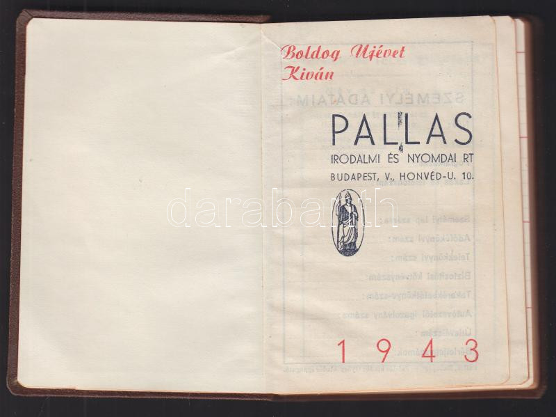 1943 Pallas Irodalmi és Nyomdai Rt. zsebnaptárja műbőr kötésben https://www.darabanth.com/de/162-Fernauktion/162.0/Andere-Sammelgebiete/Drucksachen~1000146/1943-Pallas-Irodalmi-es-Nyomdai-Rt-zsebnaptarja-mubor-kotesben~II524298