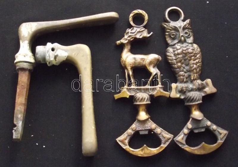 Beschreibung: 2db díszes réz sörnyitó és 2db réz kilincs