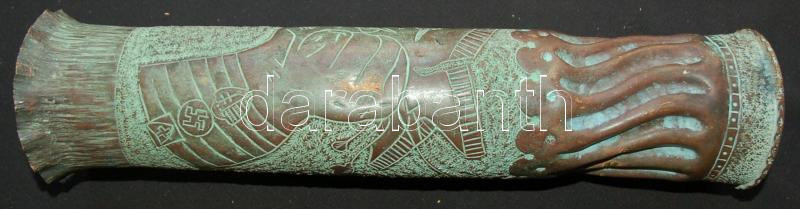 II. világháborús domborművel díszített srapnel-váza horogkereszttel (repedt) /