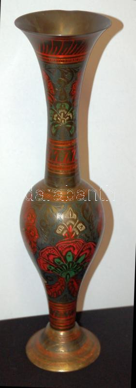 Indiai vésett színezett réz váza /