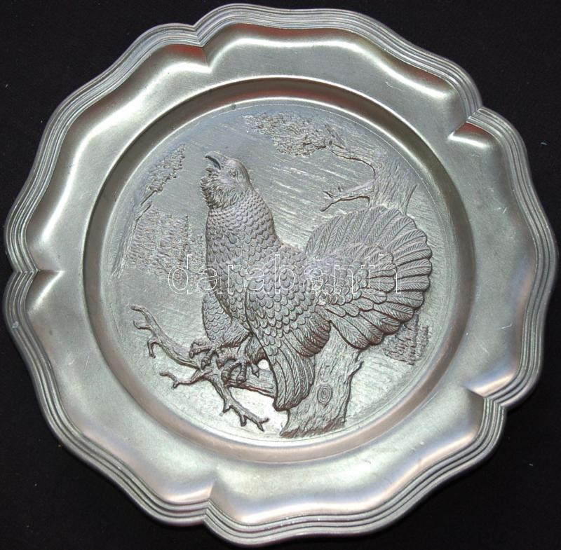 Beschreibung: Vadászjelenetet ábrázoló jelzett ón dísztányér /