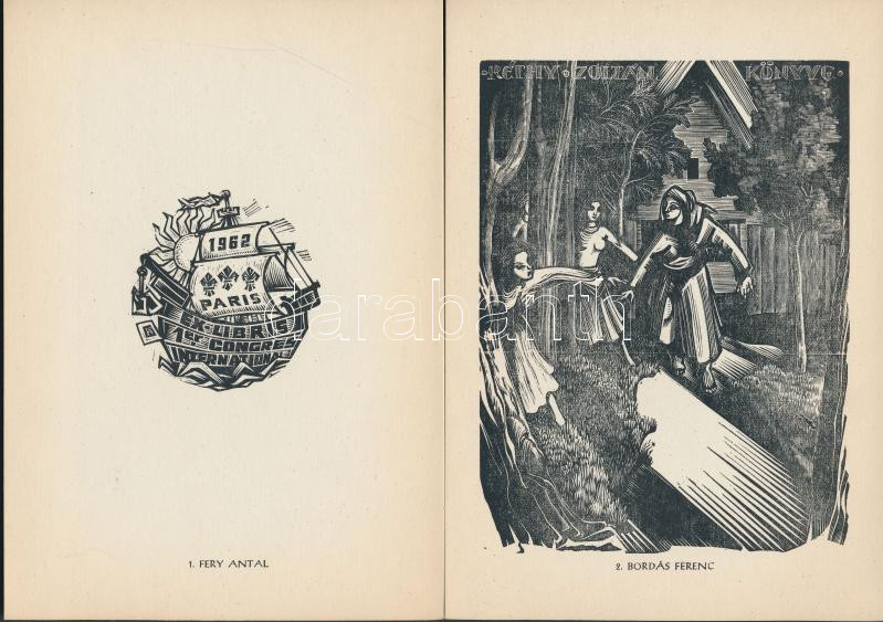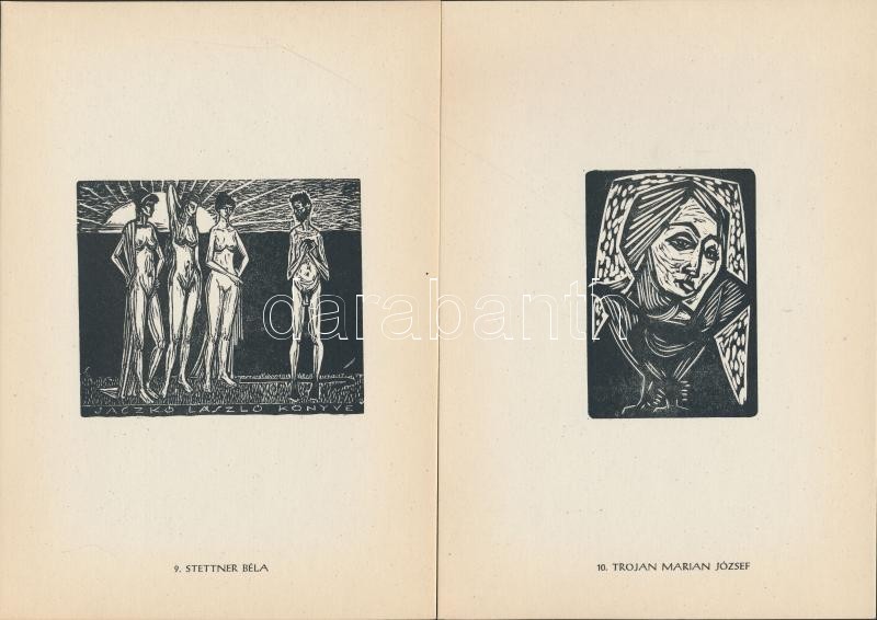Beschreibung: 1962 12 metszet magyar grafikusoktól, benne Gross Arnold, Drahos István, Varga Gyula, stb. sorszámozott 373/500