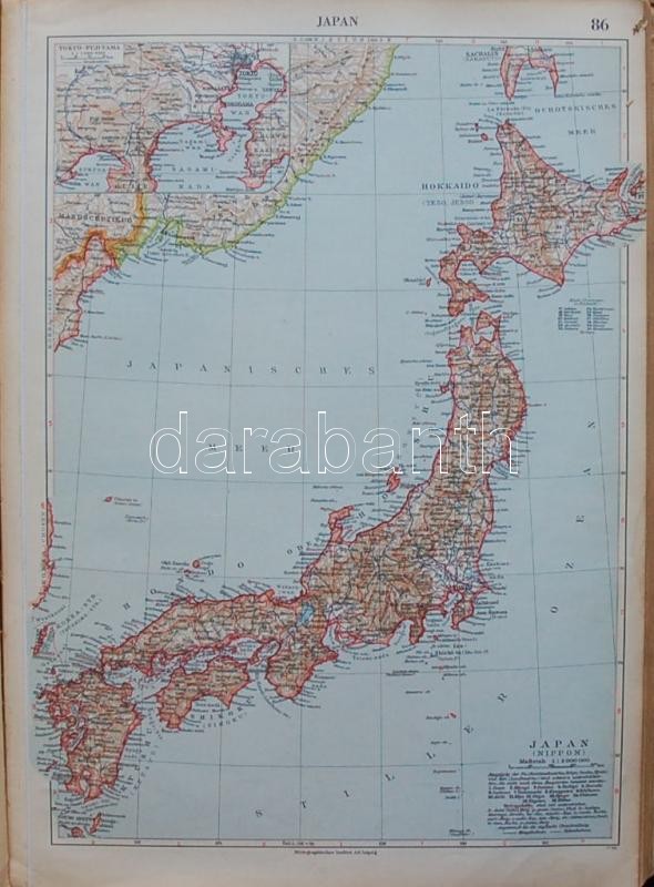 Beschreibung: 1938 Meyers grosser Hausatlas mit 213 haupt und Nebenkarten. (gerinc sérült) / (spine-cover damaged) 31x43 cm