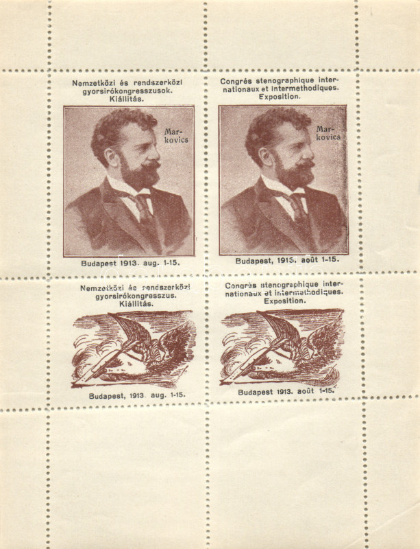 Beschreibung: 1913 Nemzetközi és rendszerközi gyorsírókongresszusok, kiállítás levélzáró kisív