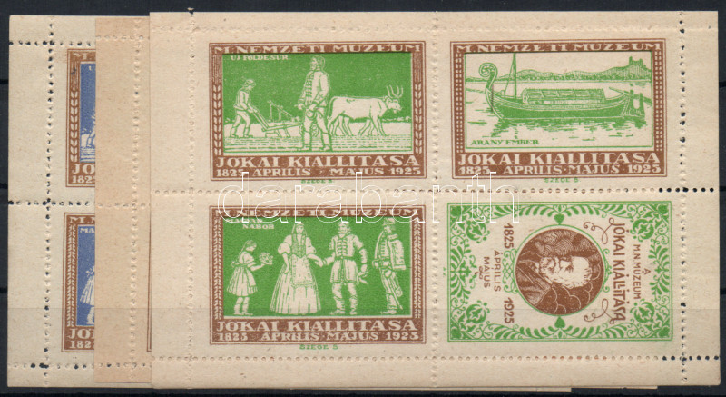 Beschreibung: 1925 Jókai Mór kiállítás levélzáró kisív 3 klf színben