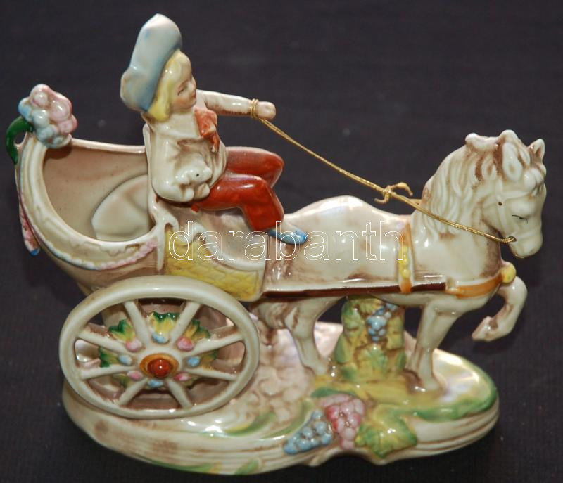 Beschreibung: Kézzel festett lovaskocsizó gyereket ábrázoló jelzett NDK porcelán figura /
