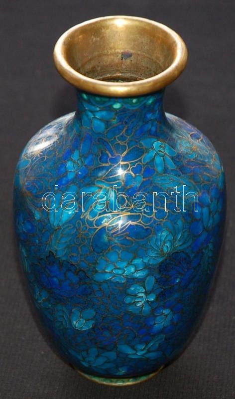 Beschreibung: Növényi motívumokkal díszített zománcozott vázácska /