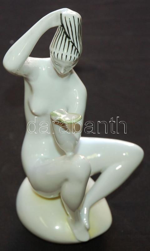 Beschreibung: Szépítkező nő, kézzel festett jelzett Zsolnay porcelán figura /