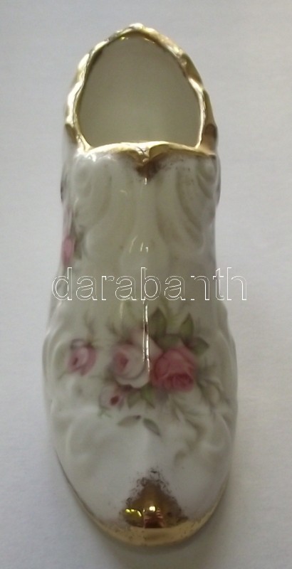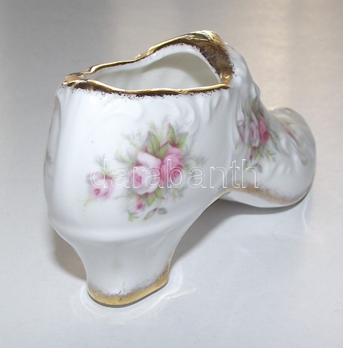 Beschreibung: Virágokkal díszített szolidan aranyozott angol porcelán cipő /