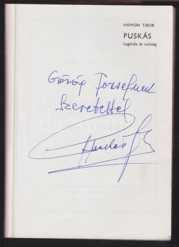1985 Hámori Tibor: Puskás - Legenda és valóság, Puskás saját kezű dedi... https://www.darabanth.com/de/162-Fernauktion/162.0/Andere-Sammelgebiete/Signatur~1000006/1985-Hamori-Tibor-Puskas--Legenda-es-valosag-Puskas-sajat-kezu-dedikalasaval~II525109