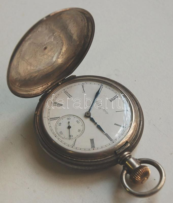 cca 1900 Elgin márkájú ezüst (Ag) duplafedeles zsebóra Sato szerkezettel másodpercmutatóval működőképes állapotban/