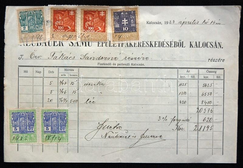 Beschreibung: 1923 Neubauer Samu Litho reklámos számla okmánybélyegekkel